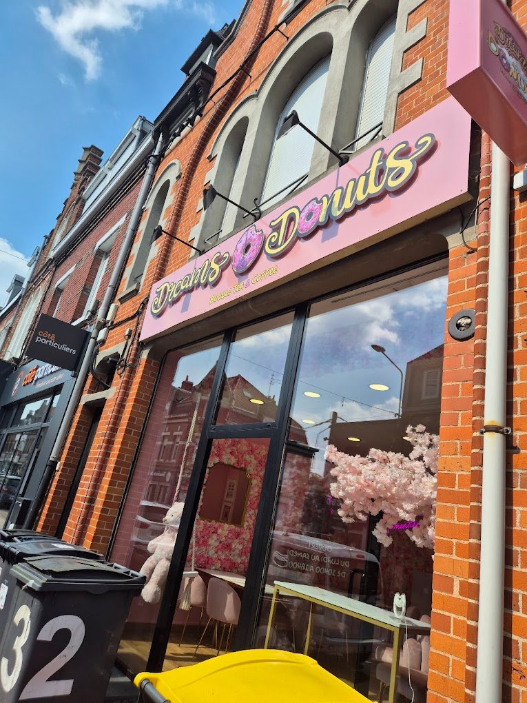 Dreams Donuts Armentières est une boutique spécialisée dans la confection de donuts artisanaux, proposant une vingtaine de saveurs telles que chocolat, Nutella, spéculoos, caramel, vanille et fraise. Chaque semaine, de nouveaux parfums sont introduits pour surprendre les papilles des clients. Les donuts sont disponibles à l'unité ou en boîtes de 6 ou 12, avec des options de vente sur place, à emporter et en livraison via des partenaires. La personnalisation des donuts est possible sur demande pour des événements tels que des anniversaires ou des réunions. En plus des donuts, la boutique offre une variété de gourmandises, notamment des boissons chaudes, des milkshakes, des bubble teas et des glaces, faisant de cet endroit une destination idéale pour une pause sucrée. L'équipe accueillante se tient prête à conseiller les clients et à leur faire découvrir les délices proposés. Pour plus d'informations ou pour passer une commande, il est recommandé de consulter leur site officiel ou de les contacter directement.